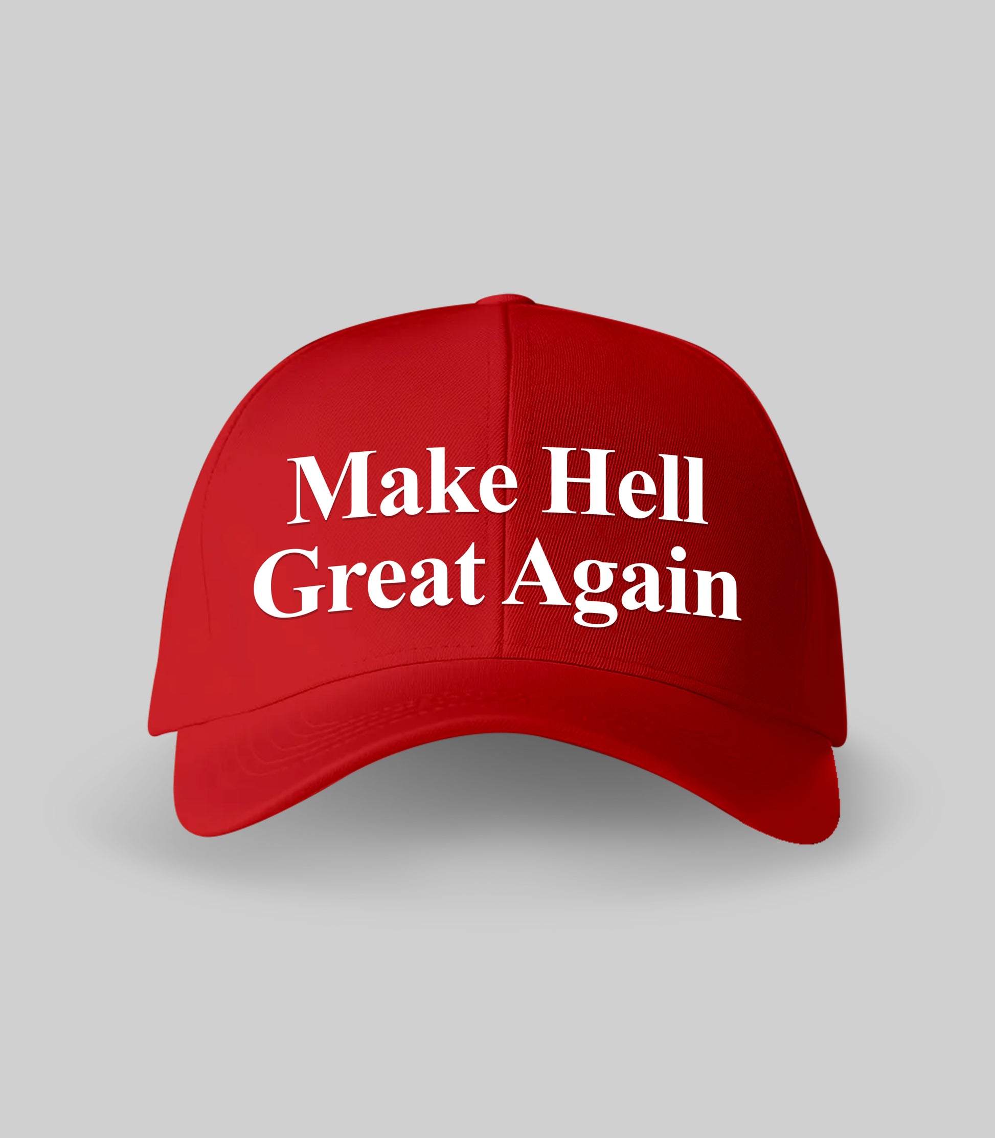 In summary, a "Make Hell Great Again" hat is a statement piece that plays on political satire, dark humor, and themes of rebellion or intense personal experience. Its meaning is fluid and depends heavily on the wearer's intent and the context in which it is displayed.